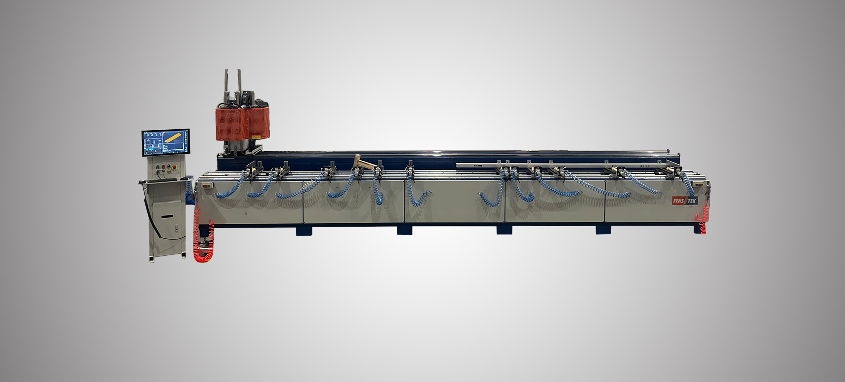 3. The machine completes milling, drilling, tapping, chamfering, grooving and other multi-functional precisely in one time, the profile was conveyed by the precise stationary avoid profile damage.